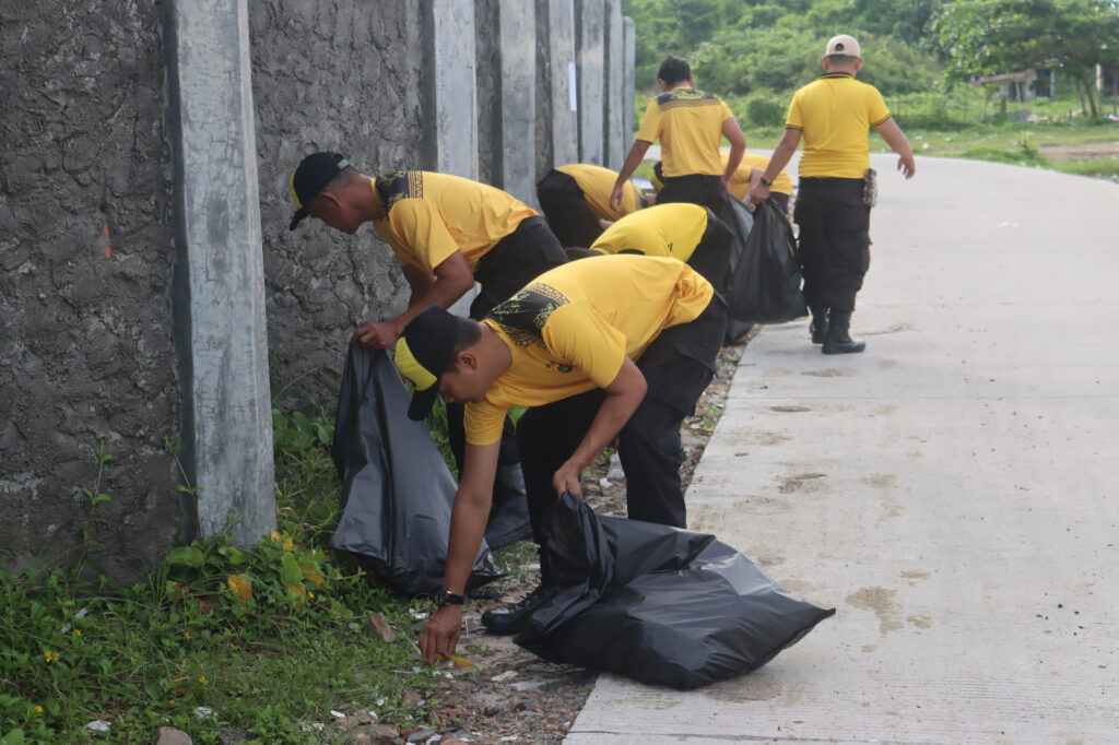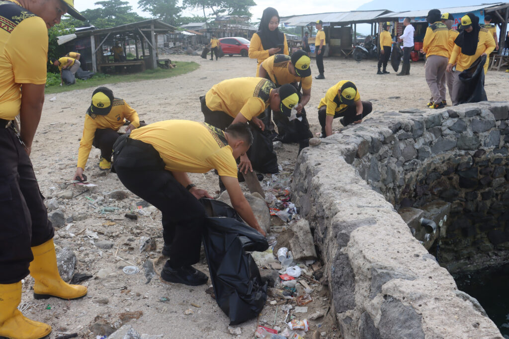 Sejumlah perwira dan personel Polres Lampung Selatan turun langsung ke lokasi. Mereka bergabung dengan 10 petugas Dinas Lingkungan Hidup (DLH) Kabupaten Lampung Selatan serta masyarakat sekitar pantai. Sampah plastik, sisa makanan, dan material lain yang berserakan di sepanjang pantai dikumpulkan dan diangkut.