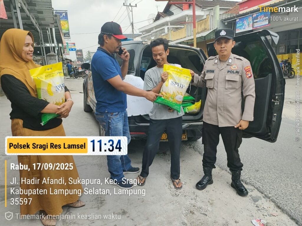 “Hari ini, Personil Polsek Sragi melakukan Patroli Hunting dan penjualan beras Stabilisasi Pasokan dan Harga Pangan (SPHP) dalam rangka Gerakan Pangan Murah di depan Pasar Belangah Desa Sukapura Kecamatan Sragi Kabupaten Lampung Selatan,” ucapnya.