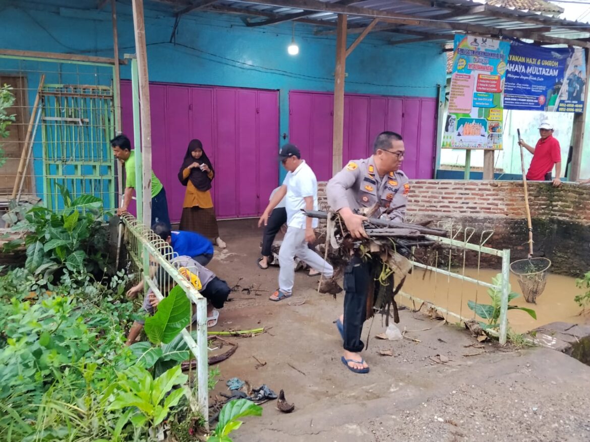 Petugas kepolisian bersama warga kemudian melakukan upaya pembersihan pada aliran air yang tersumbat. Langkah tersebut membuahkan hasil, di mana aliran sungai kembali lancar dan genangan air perlahan mulai surut.