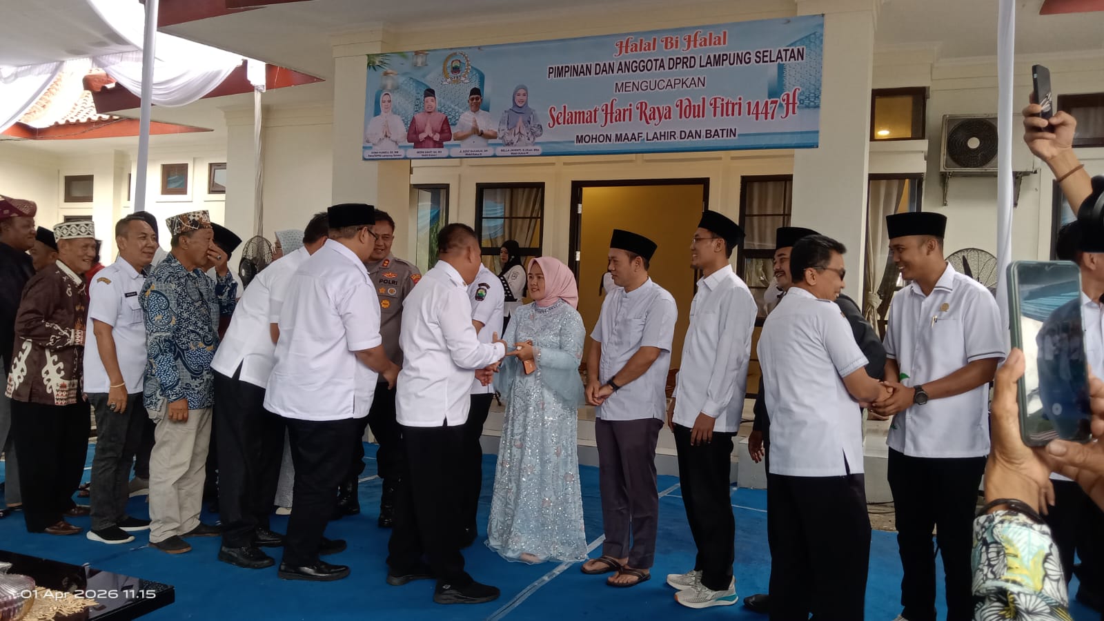 Dewan Perwakilan Rakyat Daerah (DPRD) Kabupaten Lampung Selatan (Lamsel) menggelar open house dan halalbihalal pasca Hari Raya IdulFitri 1447 Hijriah, dihalaman rumah dinas Ketua Dewan, pada Rabu (1/4/2026).