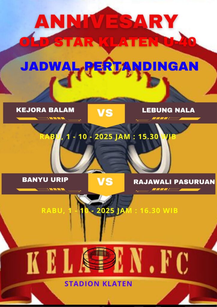 Jabung Putra Legend FC Lampung Timur lolos ke babak 16 besar dalam ajang bergengsi turnamen sepak bola di Anniversary Old Star Klaten U-40 ke-V tahun 2025.