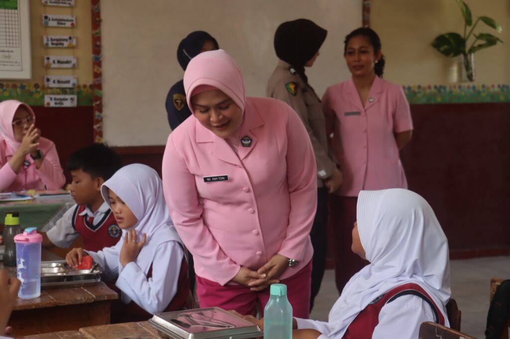 LAMSEL, PUBLICJOURNALNEWS.COM — Ketua Bhayangkari Cabang Lampung Selatan, Ny. Emy Toni, didampingi pengurus Bhayangkari, melaksanakan pemantauan Program Makan Bergizi (MBG) di TK Kemala Bhayangkari dan SDN 2 Way Urang, Senin (17/11/2025). Kegiatan ini dilakukan untuk memastikan kualitas makanan yang diberikan kepada siswa benar-benar sesuai standar gizi dan aman dikonsumsi.
