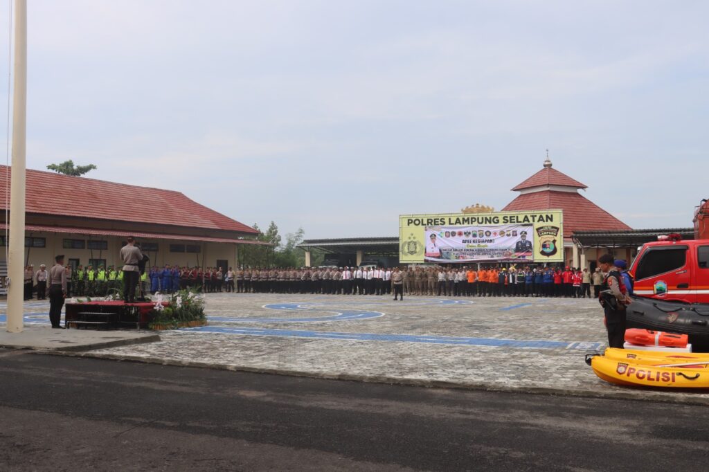 Kapolres Lampung Selatan AKBP Toni Kasmiri, S.H., S.I.K., M.H. dalam amanatnya menegaskan bahwa apel ini bukan sekadar seremonial, melainkan momentum untuk memperkuat sinergi lintas sektor dalam menghadapi potensi bencana.