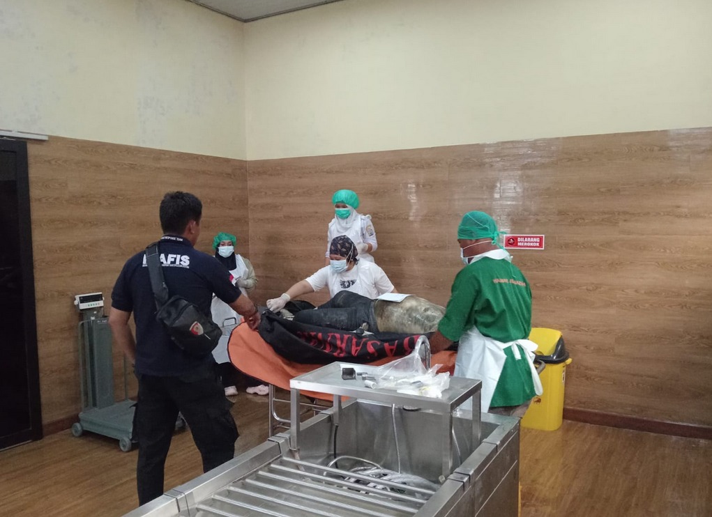 Setibanya di RS Bob Bazar Kalianda, jenazah langsung diperiksa Unit INAFIS Polres Lampung Selatan bersama dokter forensik dr. C. Andriyani Sp.FM, M.H (Kes) sekitar pukul 14.30 WIB.