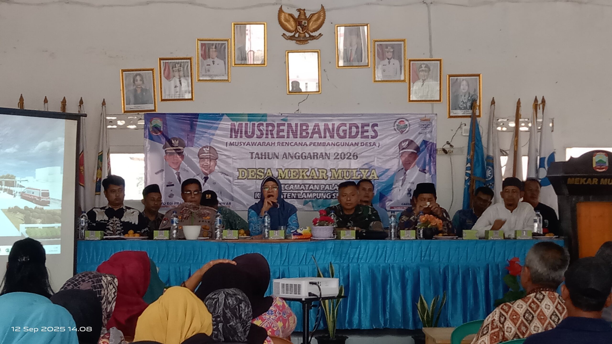 Pemerintah Desa (Pemdes) Mekar Mulya, Kecamatan Palas, Kabupaten Lampung Selatan (Lamsel) menggelar Musyawarah Rencana Pembangunan Desa (MusrenbangDes) Tahun 2026 dan Penetapan Rencana Kerja Pemerintah Desa (RKPDes) Tahun 2025, pada Jum’at 12/9/2025.