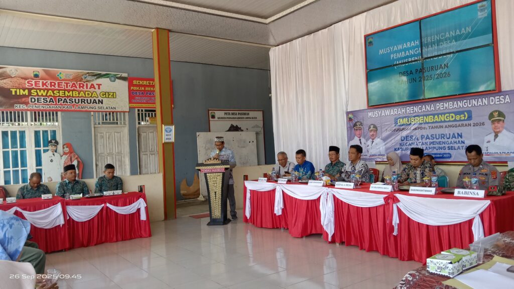 Pemerintah Desa (Pemdes) Pasuruan, Kecamatan Penengahan, Kabupaten Lampung Selatan menggelar Musyawarah Rencana Pembangunan Desa (Musrenbangdes) susun RKPDes tahun anggaran 2026. pada Jum’at (26/9/2025).