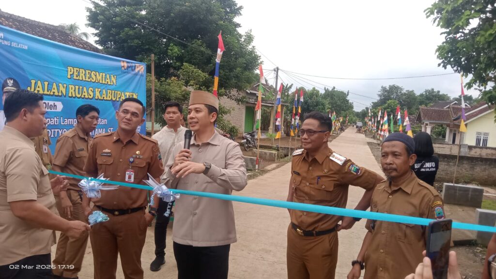 Bupati Lampung Selatan (Lamsel) Radityo Egi Pratama resmikan dua titik ruas infrastruktur jalan Kabupaten yang ada di Kecamatan Penengahan, pada Senin sore (2/3/2026).