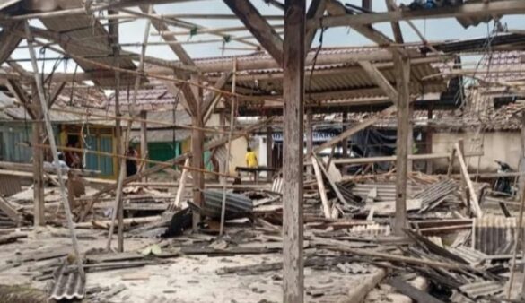 Ratusan kios di Pasar Tridharmayoga, Kecamatan Ketapang, Kabupaten Lampung Selatan (LAMSEL), porak-poranda diterjang angin puting beliung, pada Senin (2/3/2026). Bencana tersebut juga merusak puluhan rumah warga serta sarana umum yang ada di Desa Tridharmayoga dan Desa Legundi.