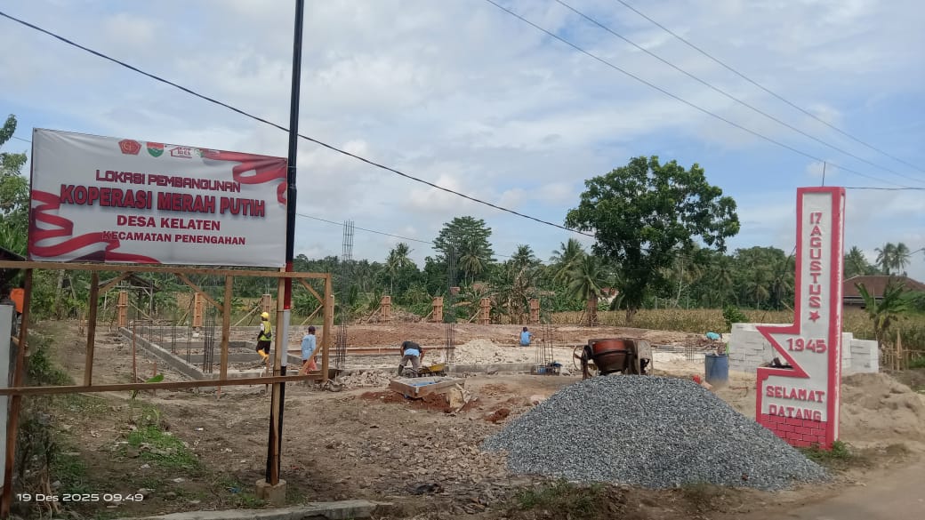 Salah satunya adalah Pembangunan gedung Koperasi Desa Merah Putih (KDMP) di Desa Klaten, Kecamatan Penengahan, Kabupaten Lampung Selatan (Lamsel), dihari ke-24 ini sudah berprogres 19 persen. Pada Jum’at (19/12/2025).
