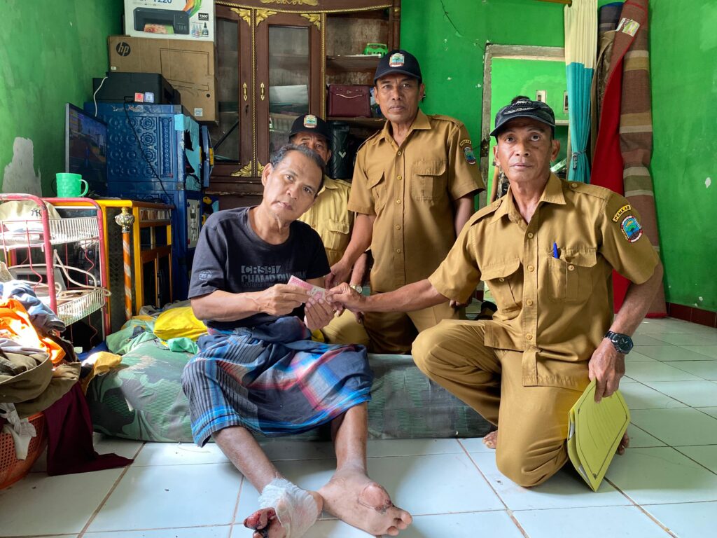 Salah seorang KPM, Samsul Hidayat (47) yang terkena sakit menahun nampak sumringah kala Aparatur Desa manyambangi dan memberikan BLT-DD di kediamannya.