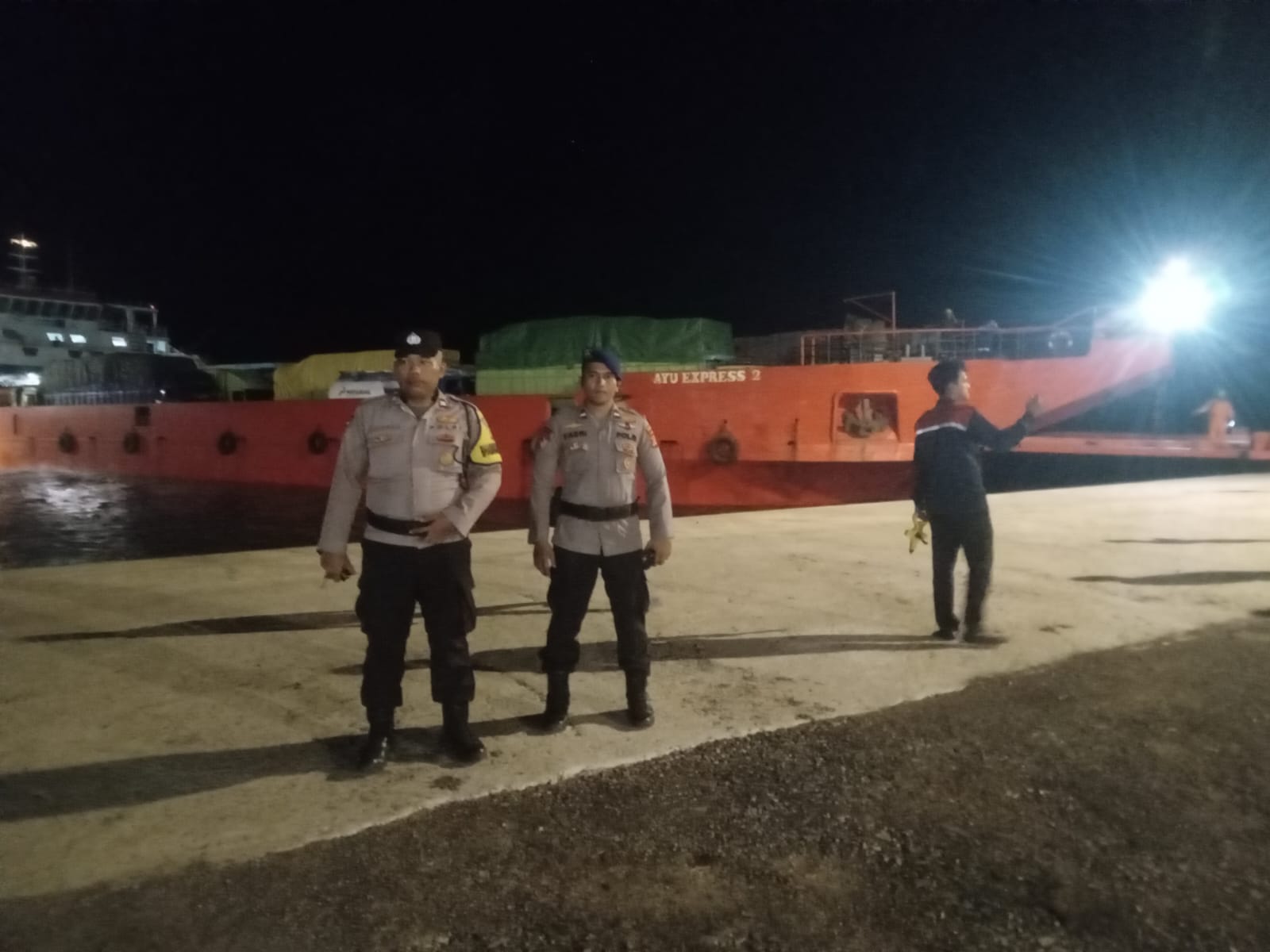 Pimpinan pengamanan di lokasi, Samuel Juan Millennio, menyampaikan bahwa pihaknya melakukan pengamanan untuk memastikan proses bongkar muat berjalan aman dan tertib.