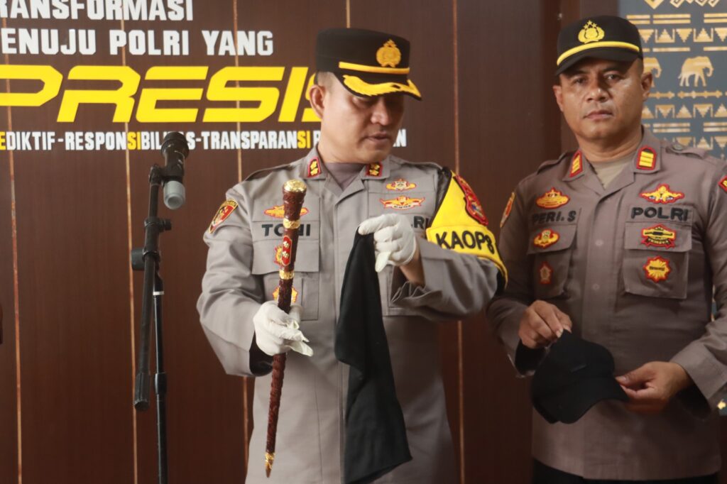 Dari tangan pelaku, polisi menyita sejumlah barang bukti, di antaranya satu bilah golok bersarung cokelat yang terdapat bercak darah, kain penutup wajah hitam, tas pinggang, topi, telepon genggam, serta jaket hoodie.