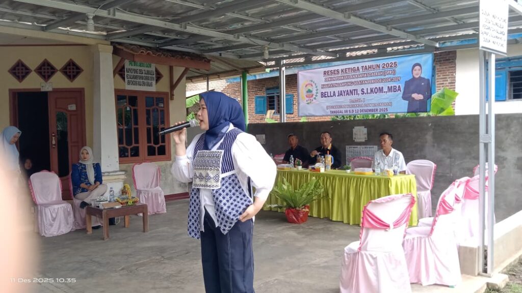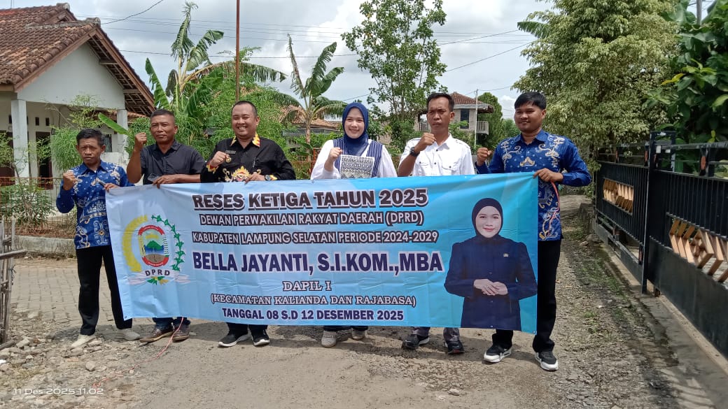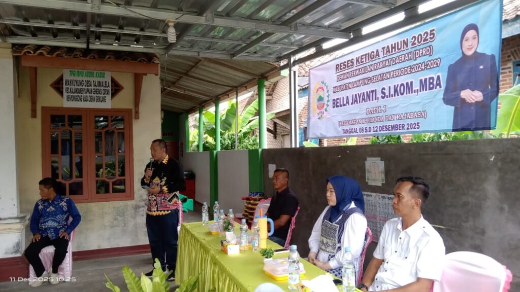 LAMSEL, PUBLICJOURNALNEWS.COM – Wakil Ketua (Waka) III Dewan Perwakilan Rakyat Daerah (DPRD) Kabupaten Lampung Selatan (Lamsel) Bella Jayanti, S.I.KOM., MBA, menggelar reses ketiga tahun 2025 di Dusun II Way Kuyung, Desa Tajimalela, Kecamatan Kalianda, pada Kamis (11/12/2025).
