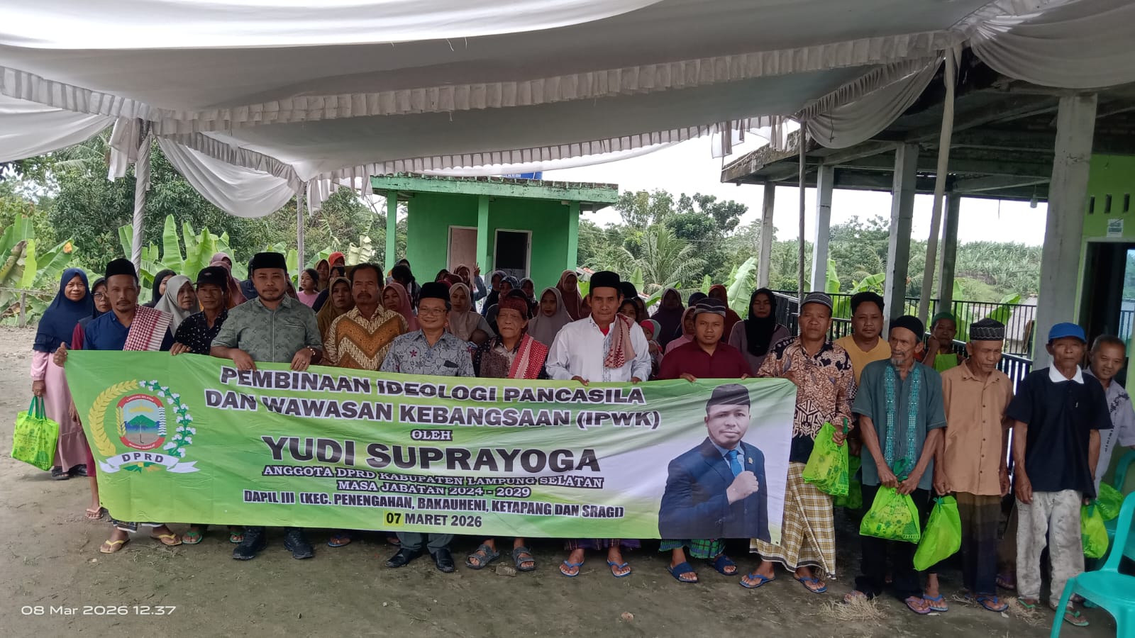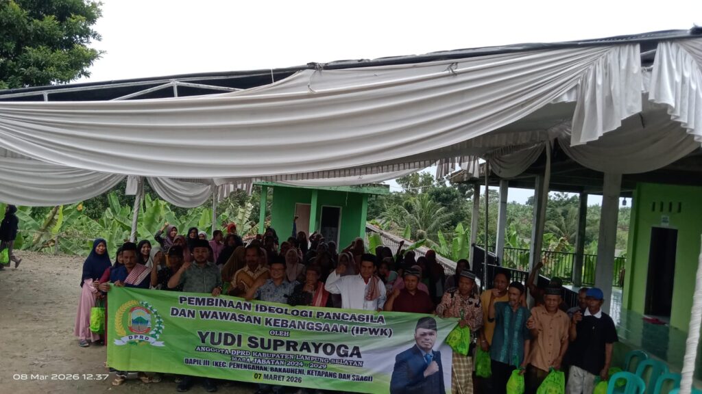 Anggota Dewan Perwakilan Rakyat Daerah (DPRD) Kabupaten Lampung Selatan (Lamsel) Yudi Suprayoga menggelar kegiatan sosialisasi pembinaan Ideologi Pancasila dan Wawasan Kebangsaan (IPWK) pada Sabtu (7/3/2026), yang bertempat Desa Legundi, Kecamatan Ketapang.