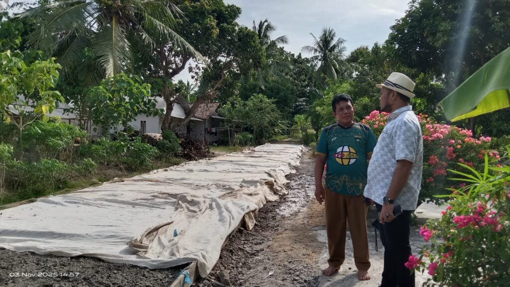 Anggota Dewan Perwakilan Rakyat Daerah (DPRD) Kabupaten Lampung Selatan (Lamsel) Yudi Suprayoga meninjau dan memantau langsung pembangunan infrastruktur jalan di 5 (lima) titik Kecamatan Ketapang, pada Senin (3/11/2025).